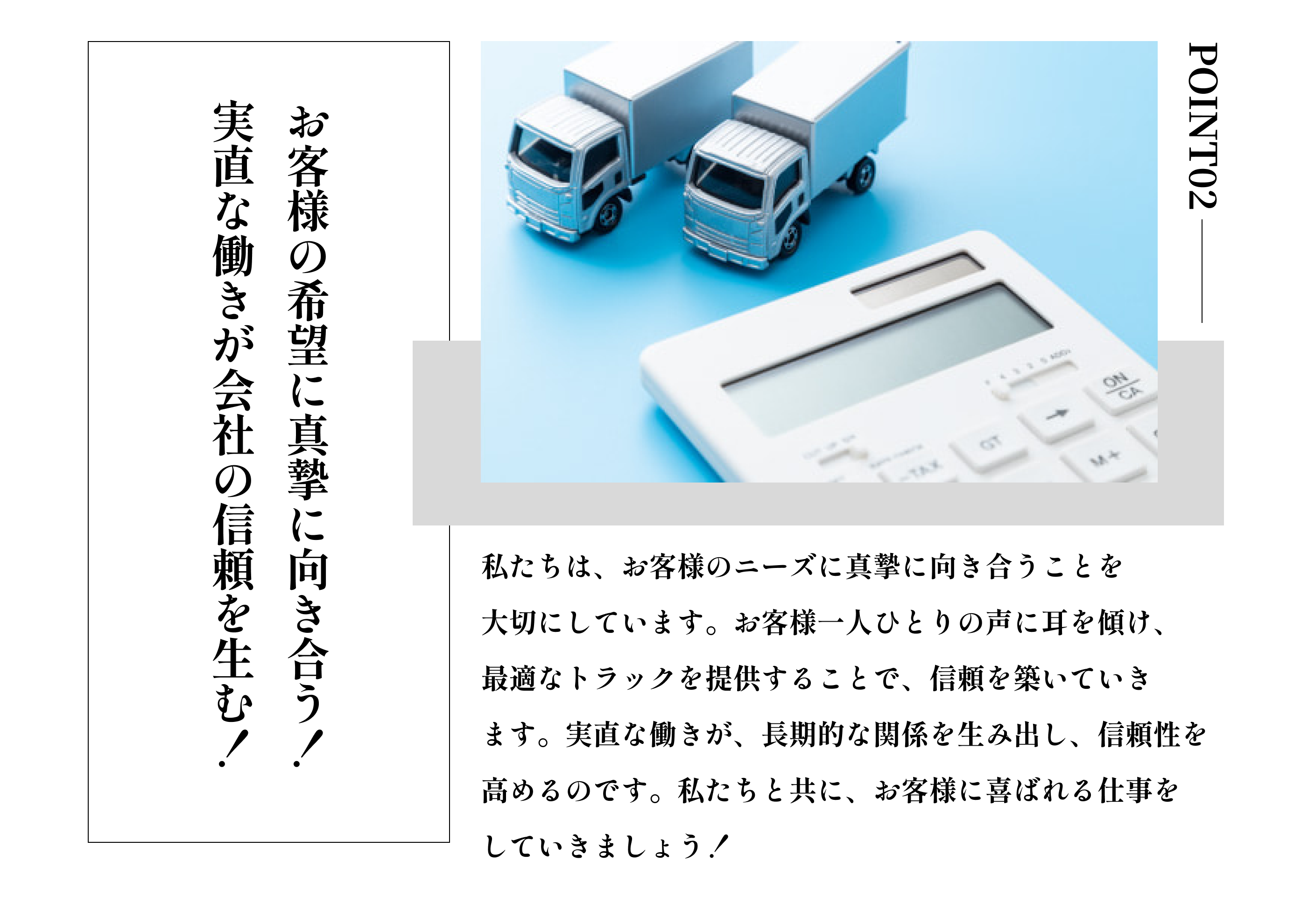 最初は興味がなくても全然OKです。業務を通してトラックの知識をつけていけます!