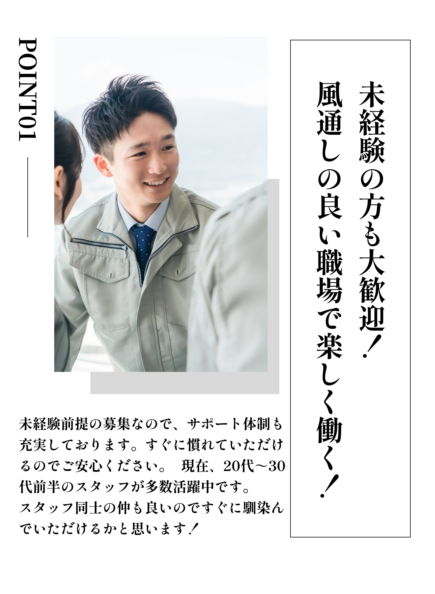 未経験前提の募集となりますので、しっかりサポートいたします。安心してご応募ください!