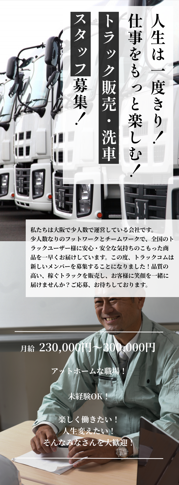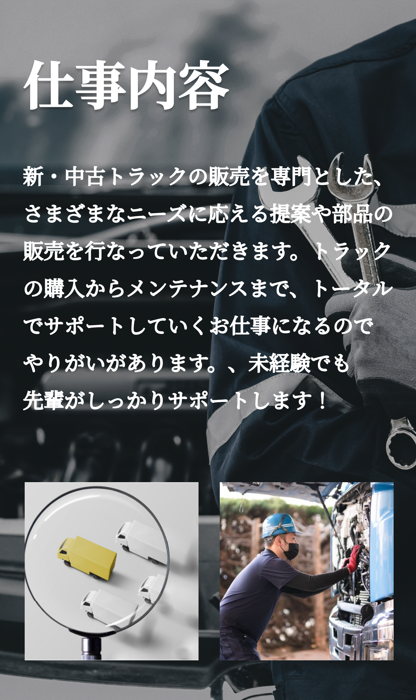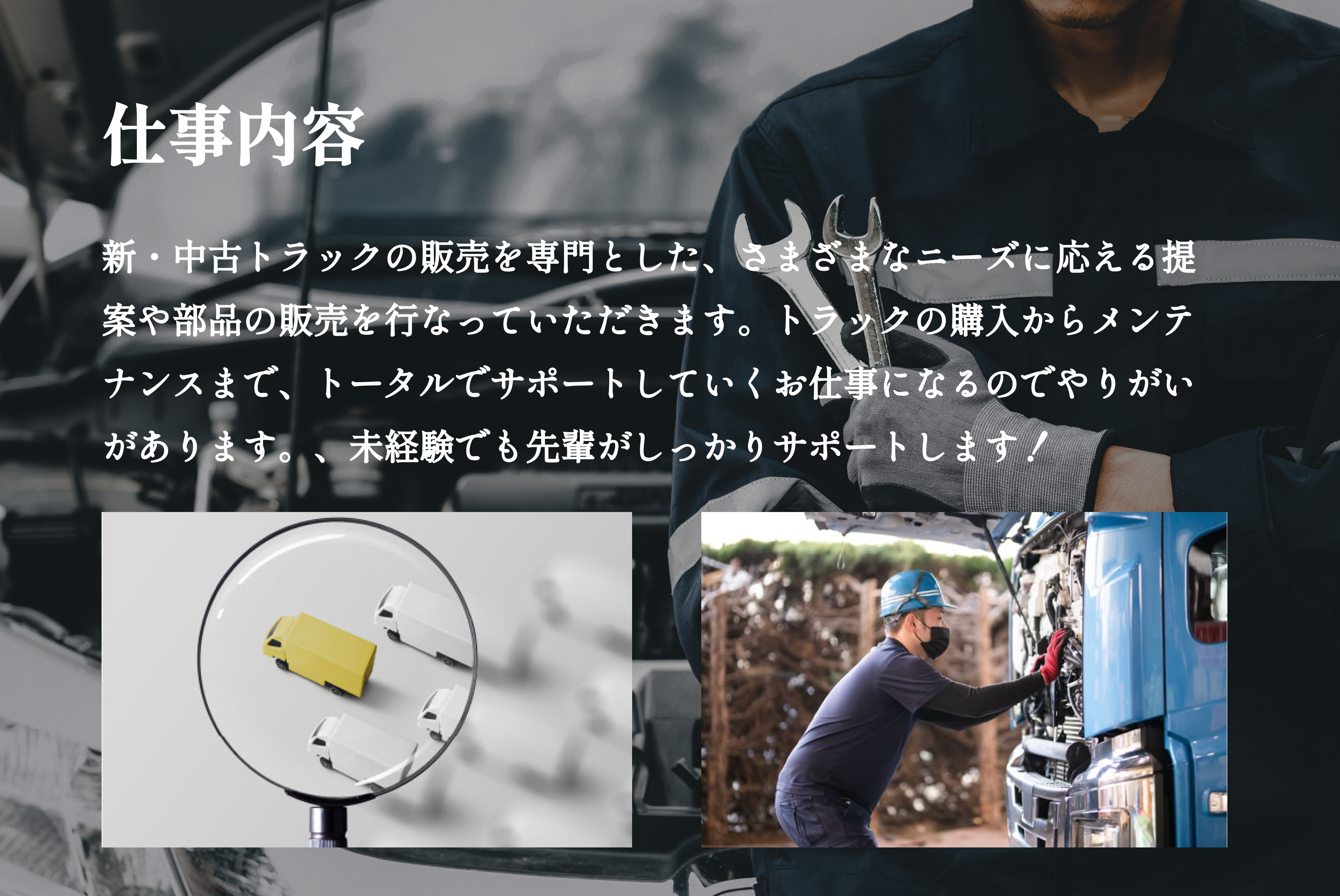 | 仕事内容 | 新・中古トラックの販売 自動車部品販売 |